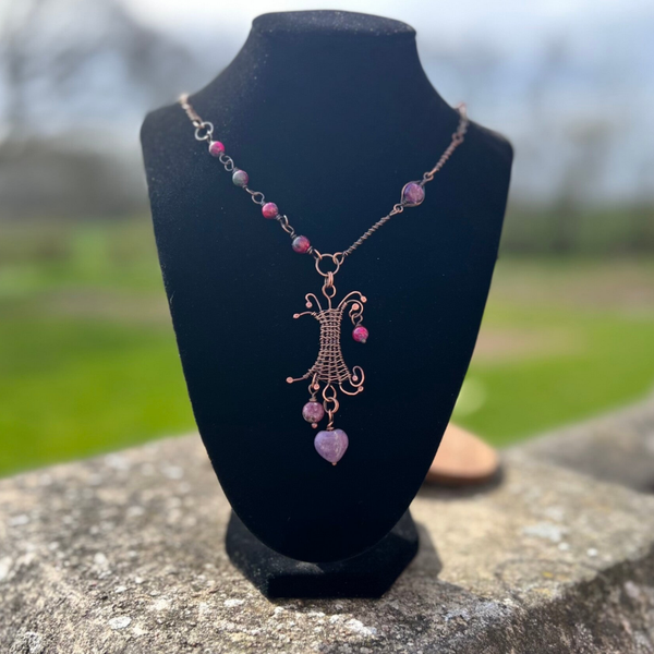 Materiale: Kobber, ? Jade, alloy. Kobber vil være Oxideret og lakeret, lakken forhindre afsmitning på huden.