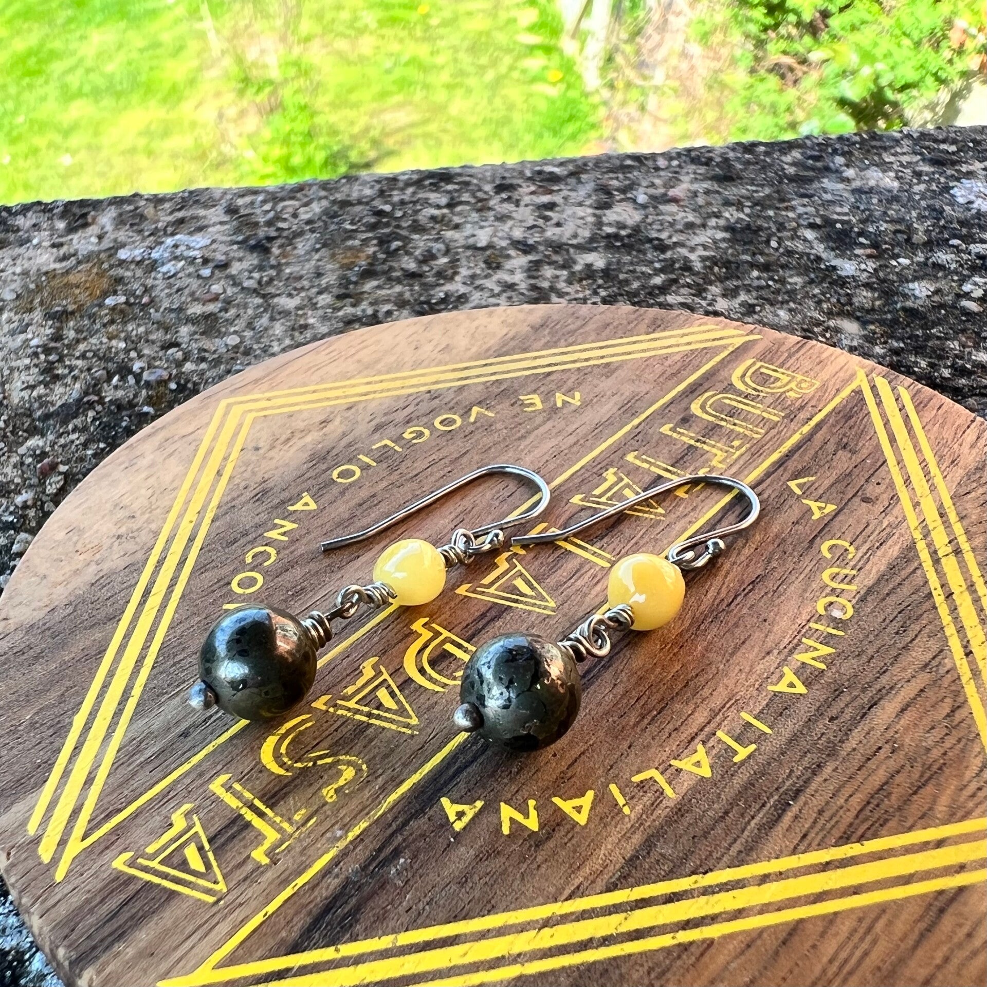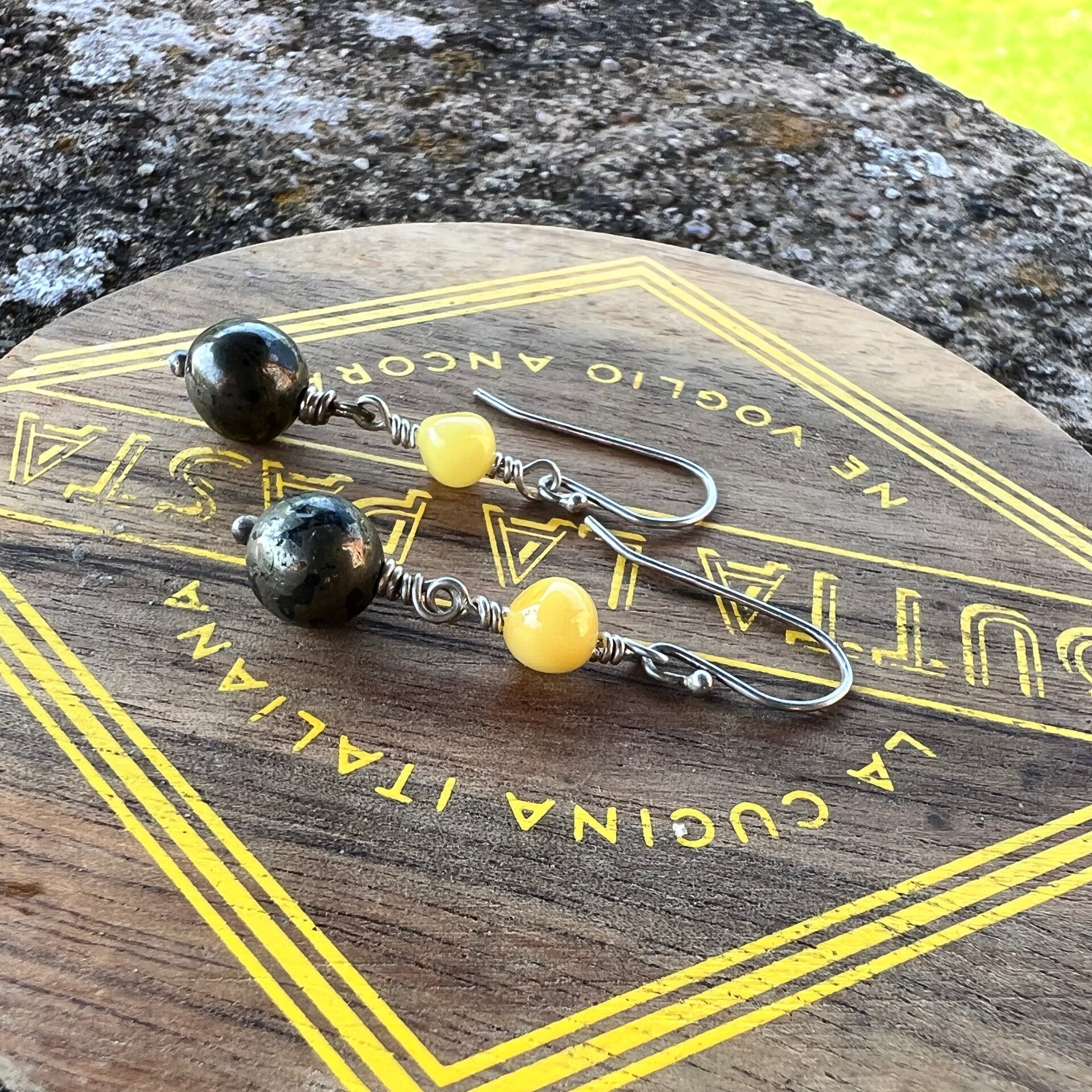 Honey Stone - Sol Unik håndlavet øreringe Sølv & Rav