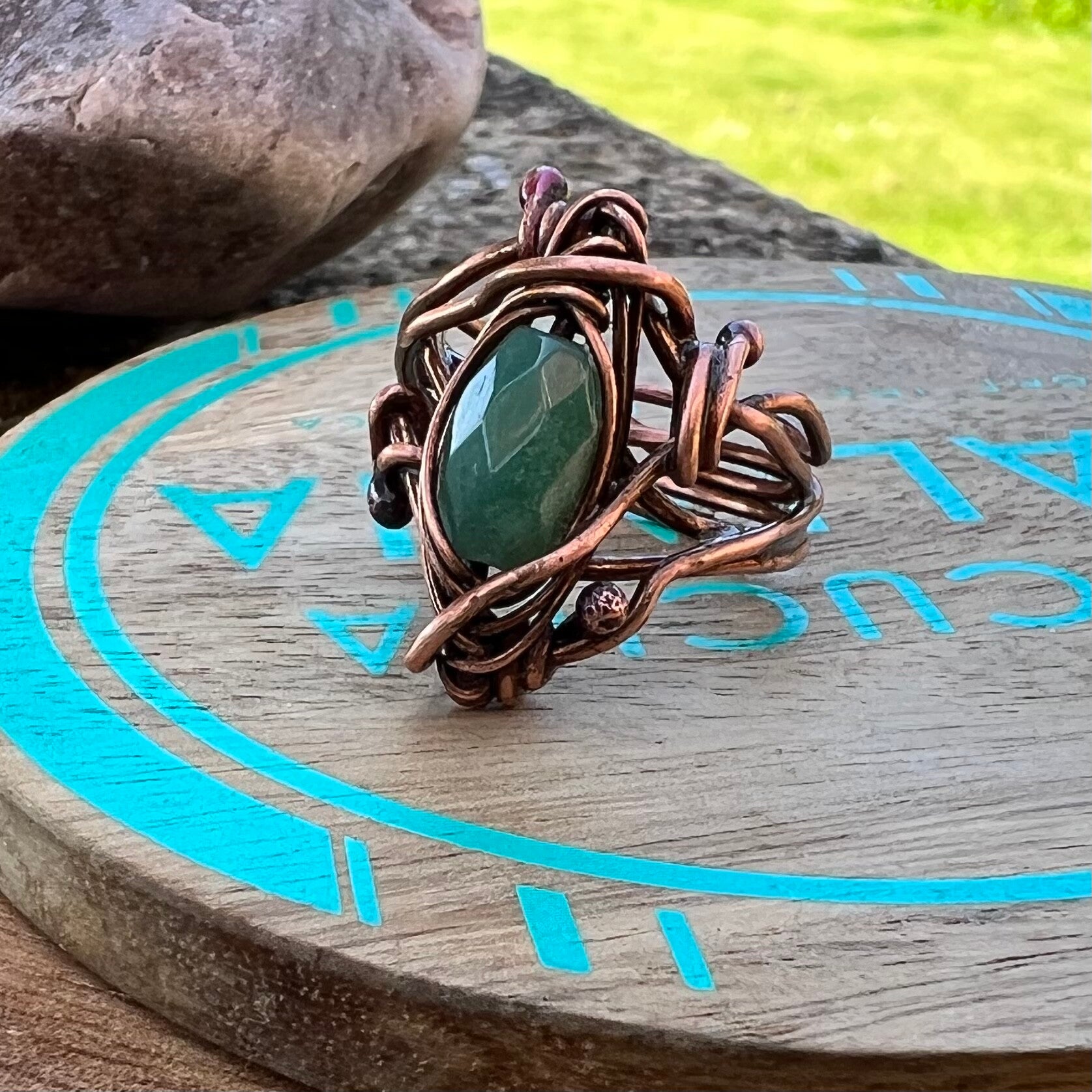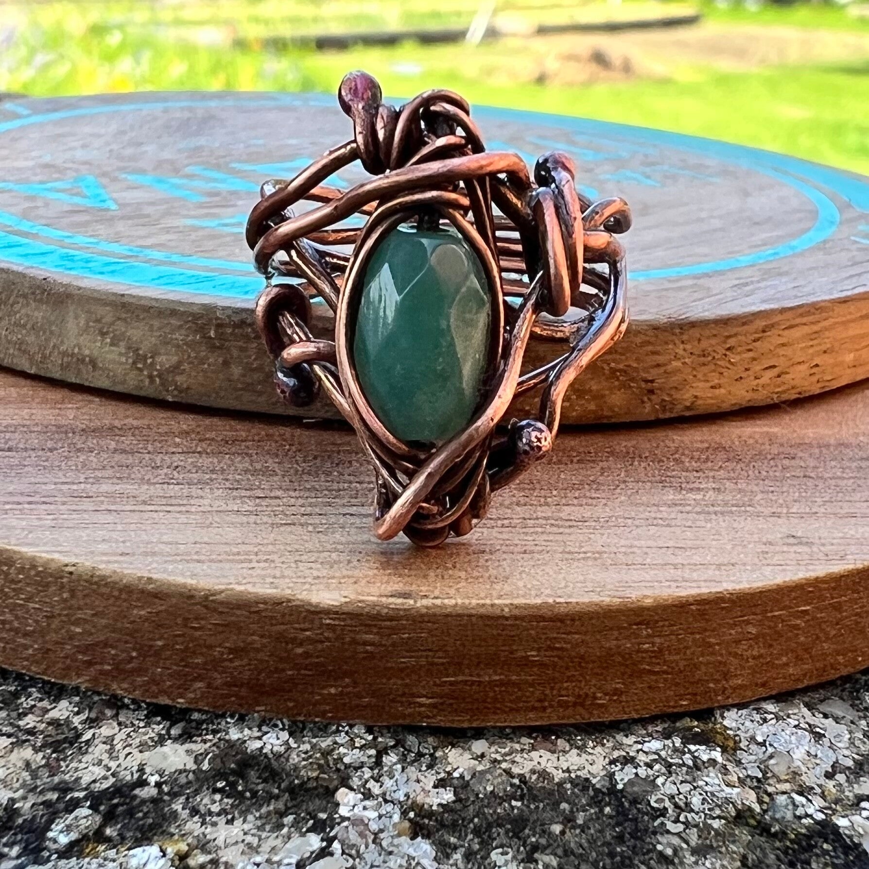 Den smukke ring "Organic i Grøn Agat" er et håndlavet kunstværk, der forener naturens æstetik med et unikt og organisk design. Ringen er omhyggeligt formet med fokus på detaljer og kvalitet, og den vikler sig graciøst omkring en strålende, oval og facetslebet grøn Agatperle. Denne ædelsten tilføjer et elegant og naturligt udtryk, der gør ringen til det perfekte valg for dig, der ønsker at bære noget helt unikt og tidløst. Perfekt som en gave, eller som et personligt smykke, der udstråler skønhed og autenticitet.