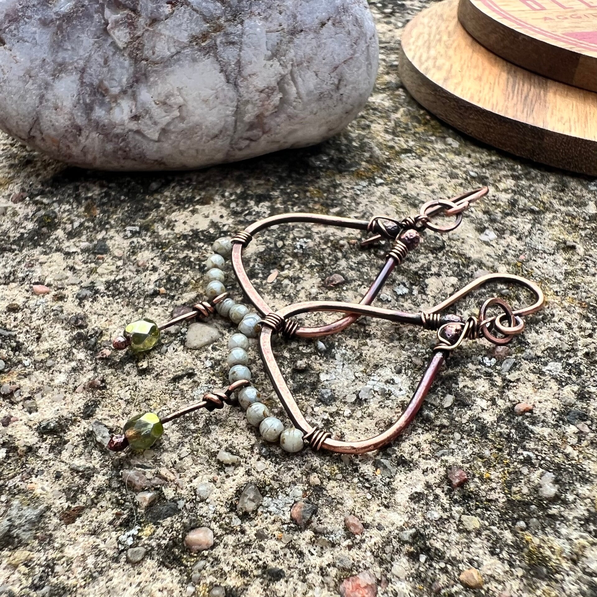 Materiale: Vintage kobber, oxideret og lakeret. Perler fra Czech.