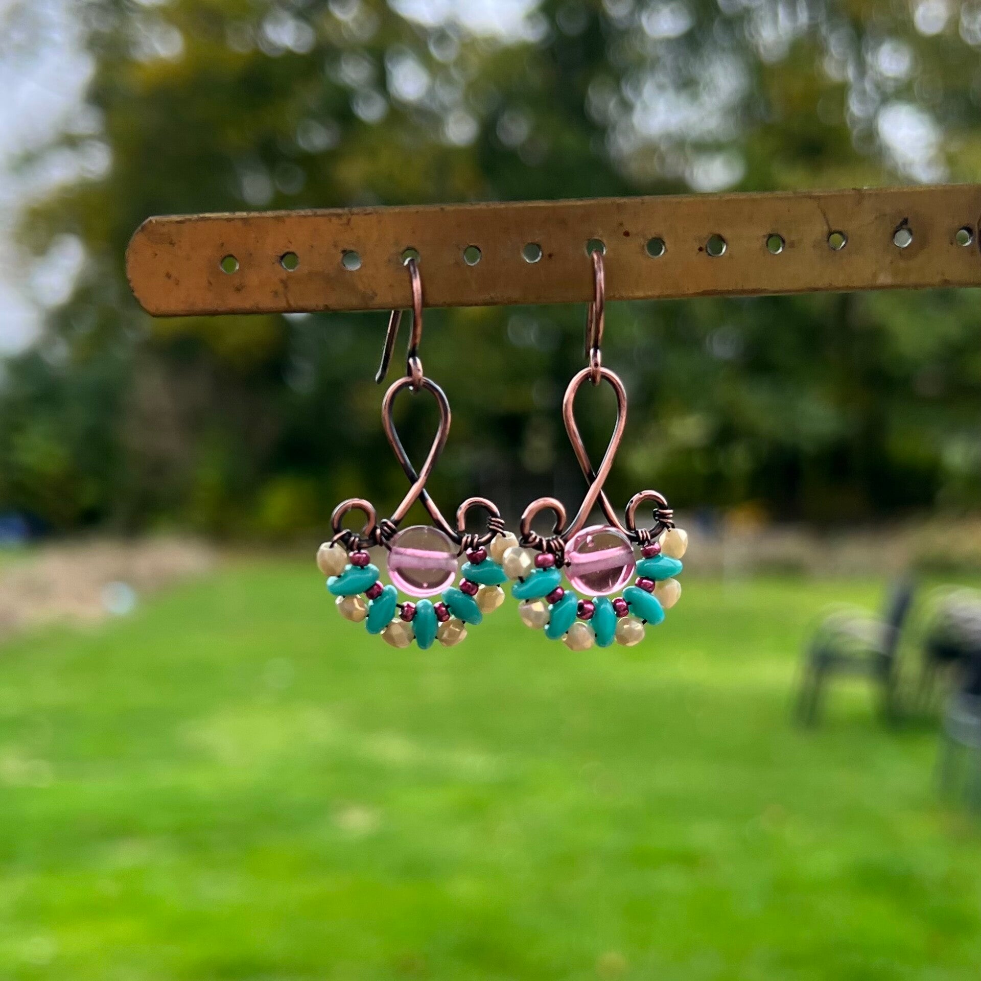 Materiale: Glas, Miyuki, Czech perler, i vintage kobber (oxideret og lakeret).