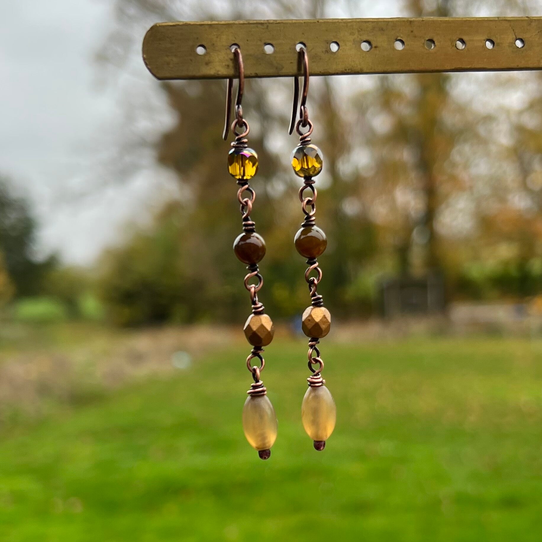 Materiale: Czech, Agat og den sidste perle er fundet på en antik messe. Kobber mørk oxideret og lakeret.