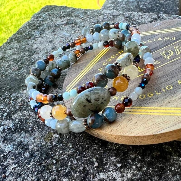Materiale: Labradorit, Gul Aventurin, Aquamarin, Agat, Amazonit, Cloisonne, alloy, kobber.