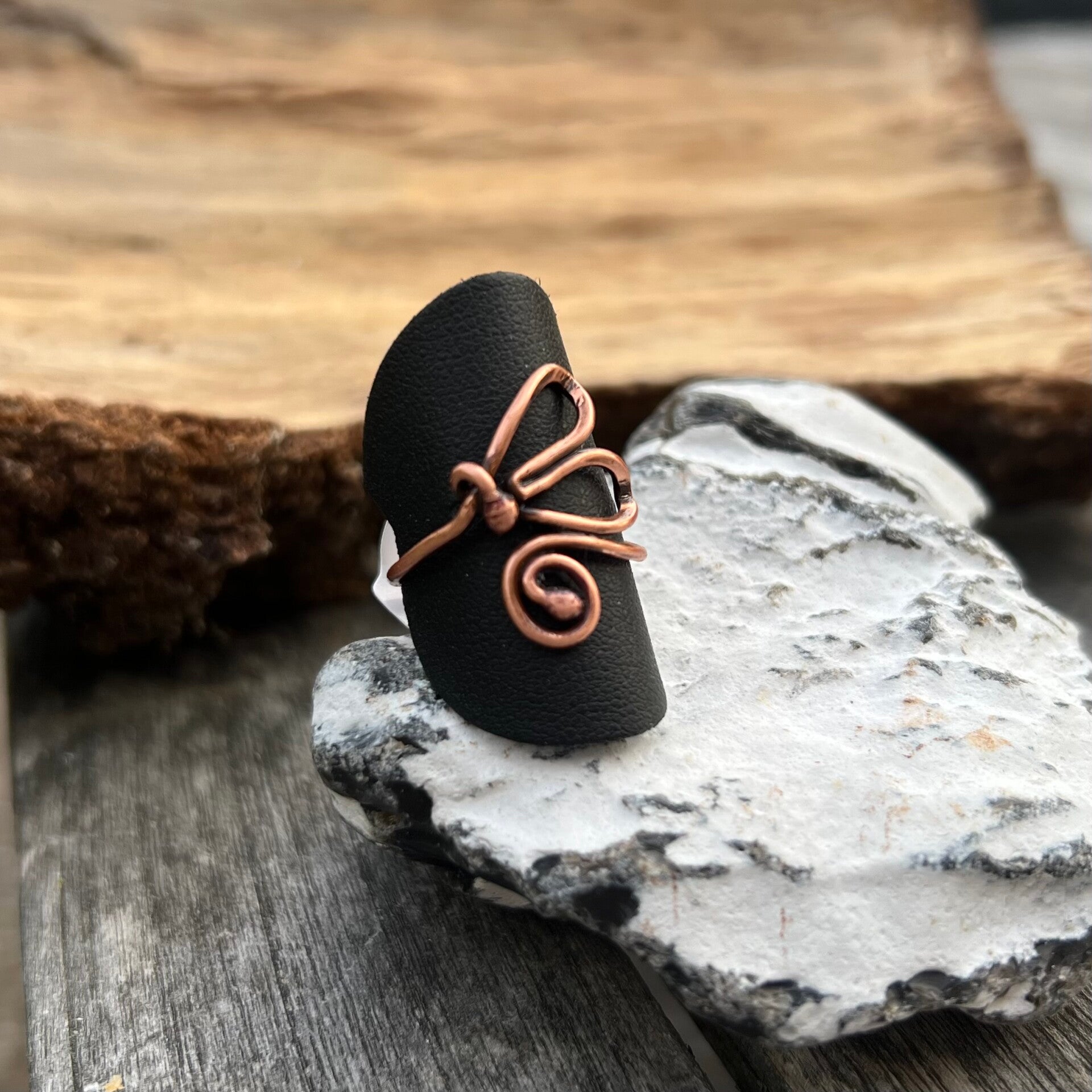 Oplev en smuk kombination af elegance og kreativitet med vores Knot & Thread - Vinge Denne skønne sommerfuglring er lavet i et helt særligt design, der skiller sig ud. Ringen er håndlavet i kraftig kobbertråd, hvilket giver den et robust og stilfuldt udtryk. Med dens let justerbare form kan ringen bruges på både pege- og tommelfingeren, så den passer perfekt til dig. Uanset om du søger et unikt smykke til dig selv eller en gave til en særlig person, vil denne ring uden tvivl sprede glæde og beundring.