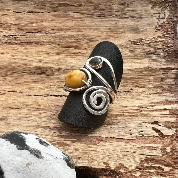 Spirit Form - Alva Unik håndlavet ring sølv & Rav
