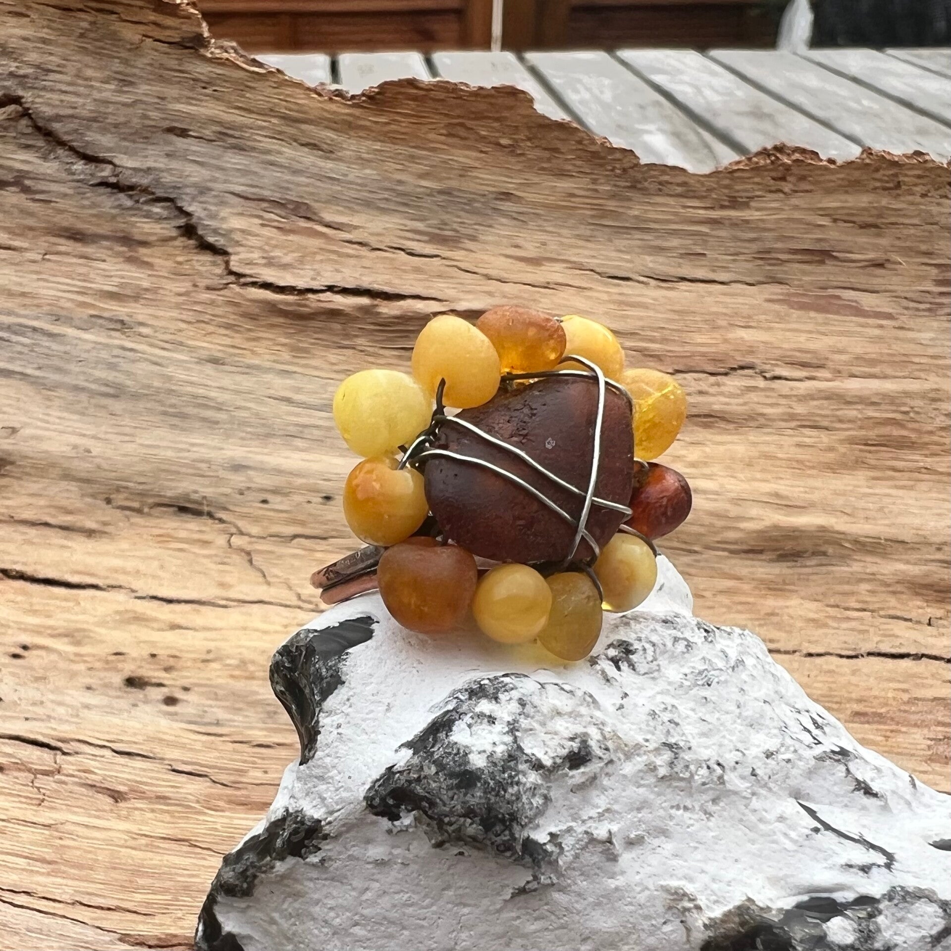 Amber Bloom - Solblomst Unik håndlavet ring Rav
