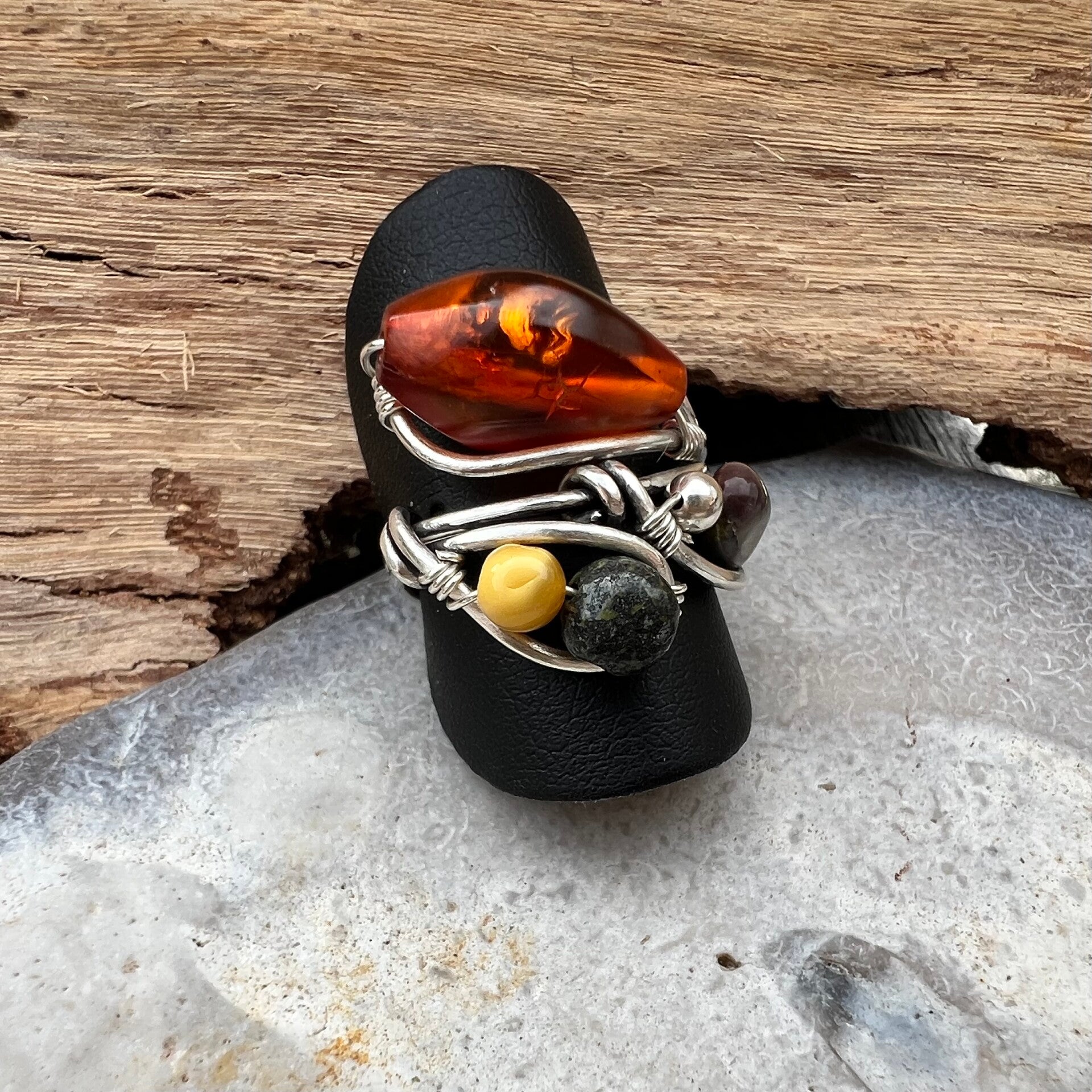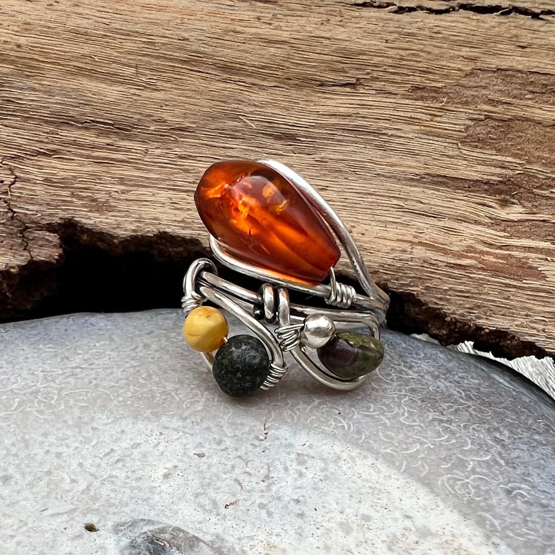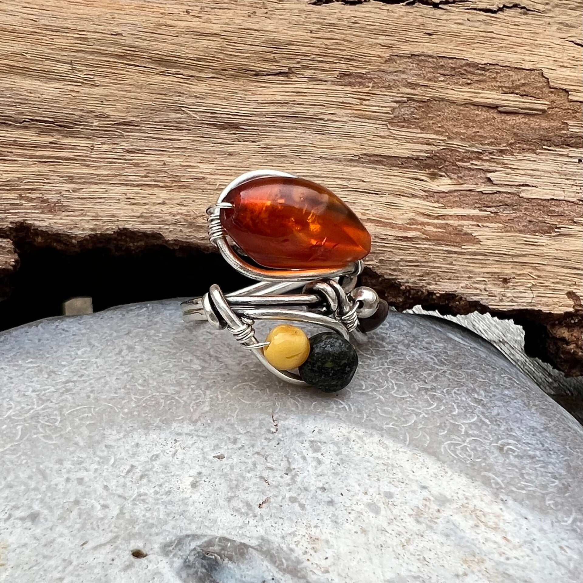 Spirit Form - Kara Unik håndlavet ring sølv & Rav