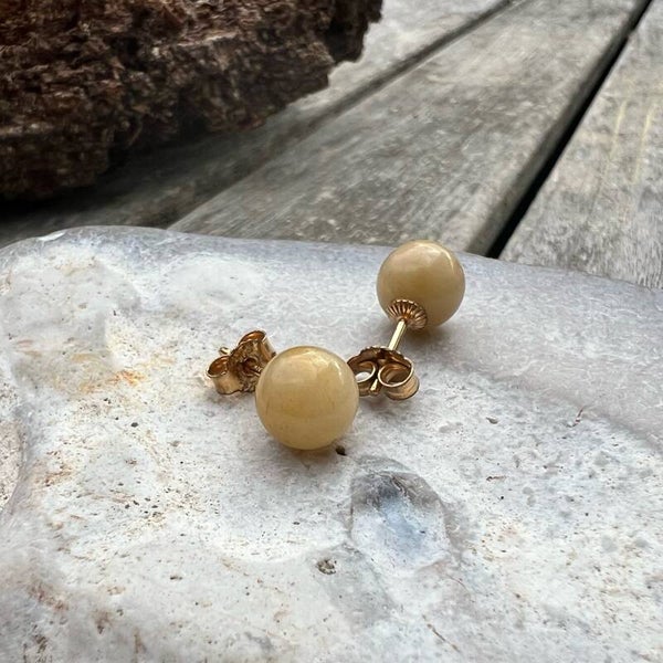 Disse klassiske ørestikker, bære en smuk Topas Jade i en smuk sart gul farve. Ørestikken har et smukt og klassisk design.