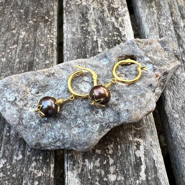 Disse øreringe i et klassisk design, men krydret lidt. Perlerne er ca10mm og i fantastisk smukke nuancer.