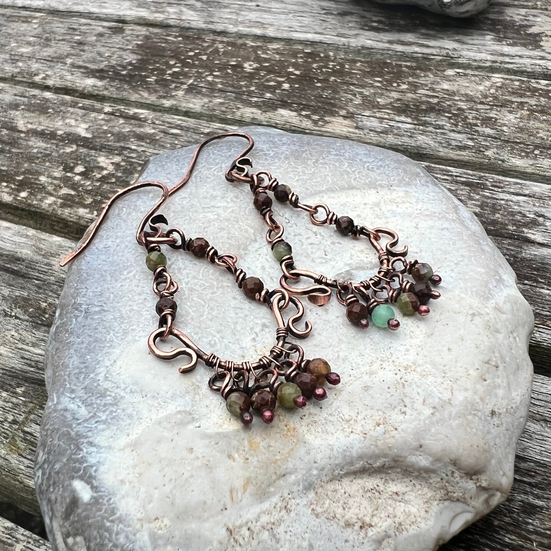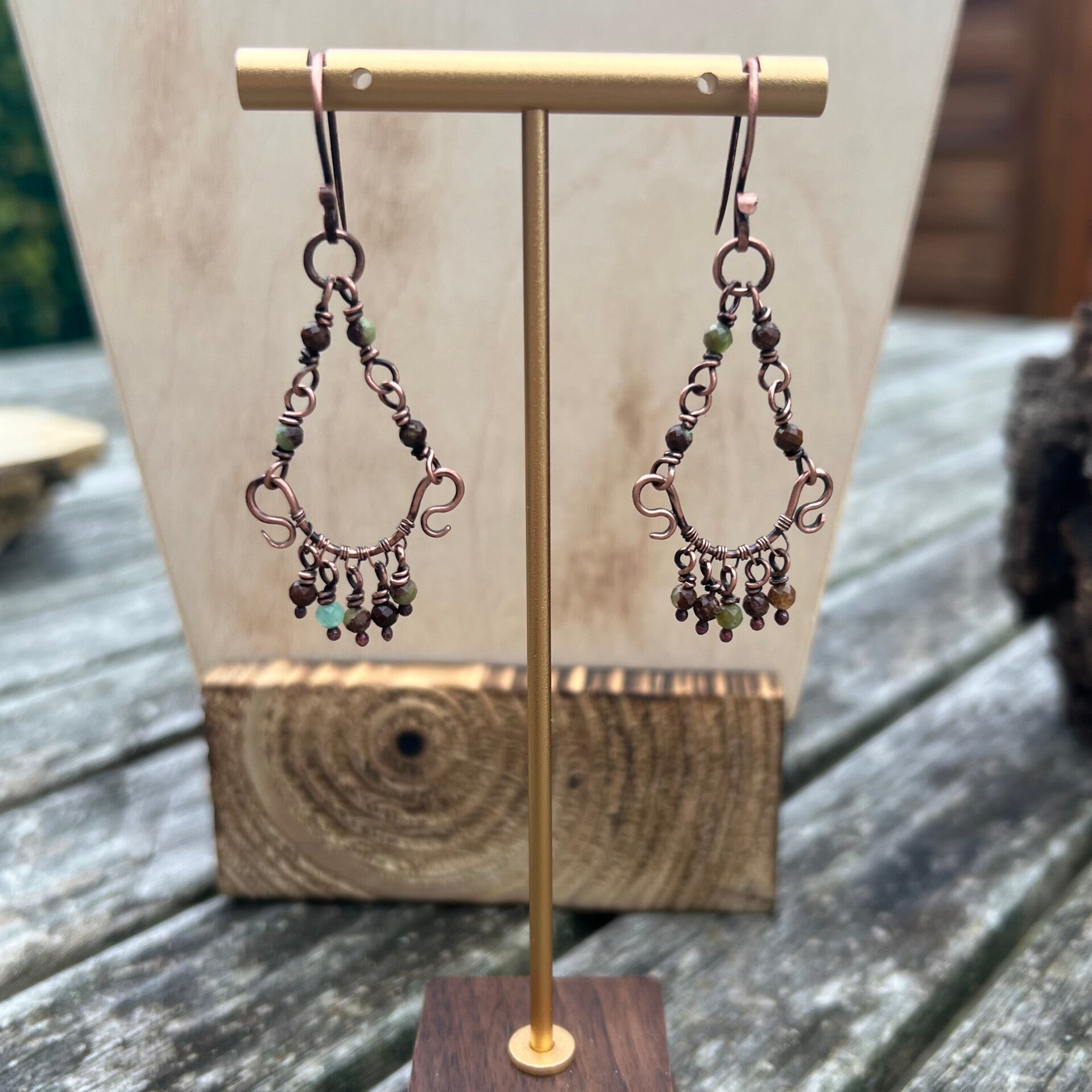 Nordica - Eir Unik Håndlavede Øreringe i Oxideret Kobber og Chrysopras