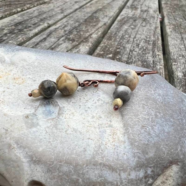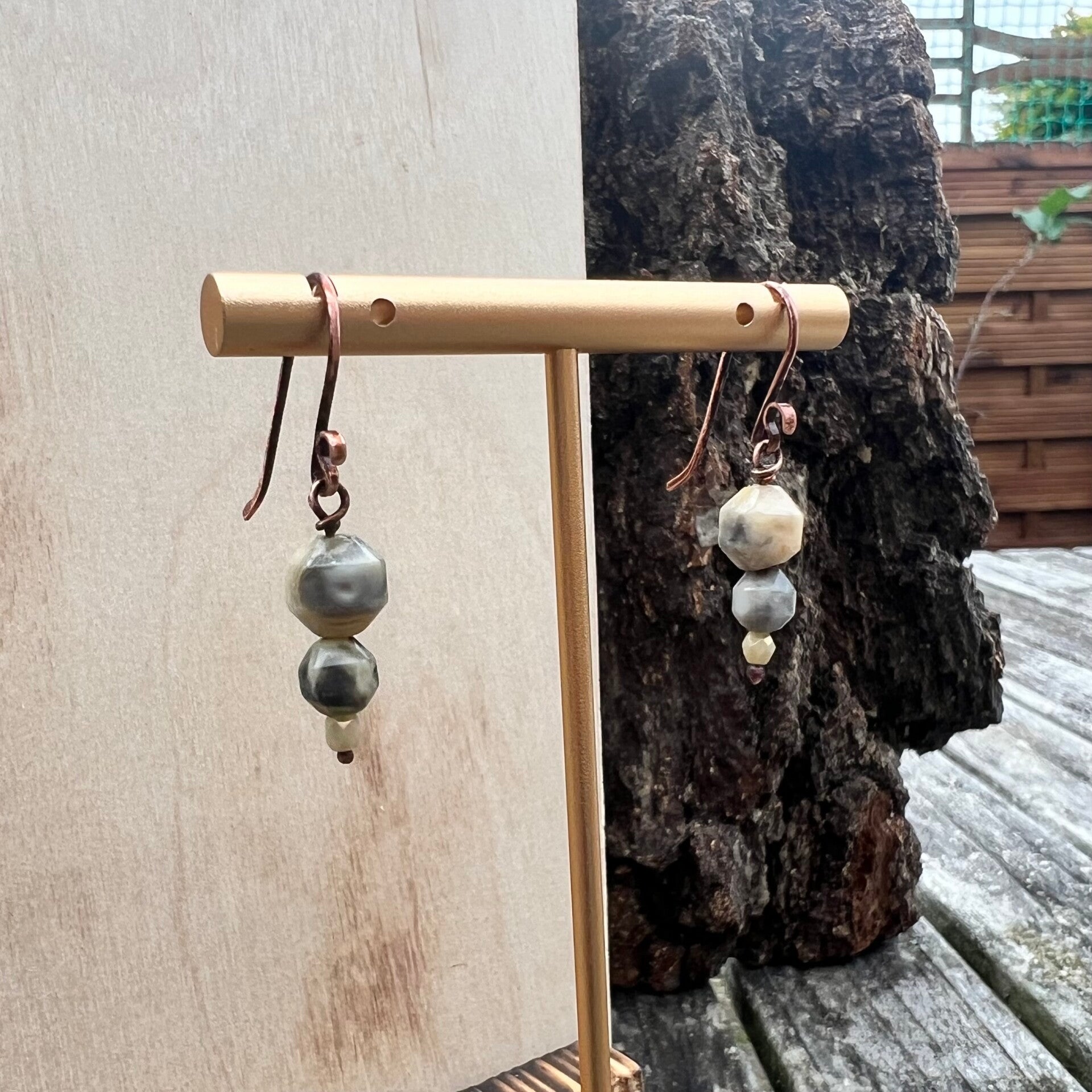Nordica - Unika øreringe i Crazy Agat og Oxideret kobber