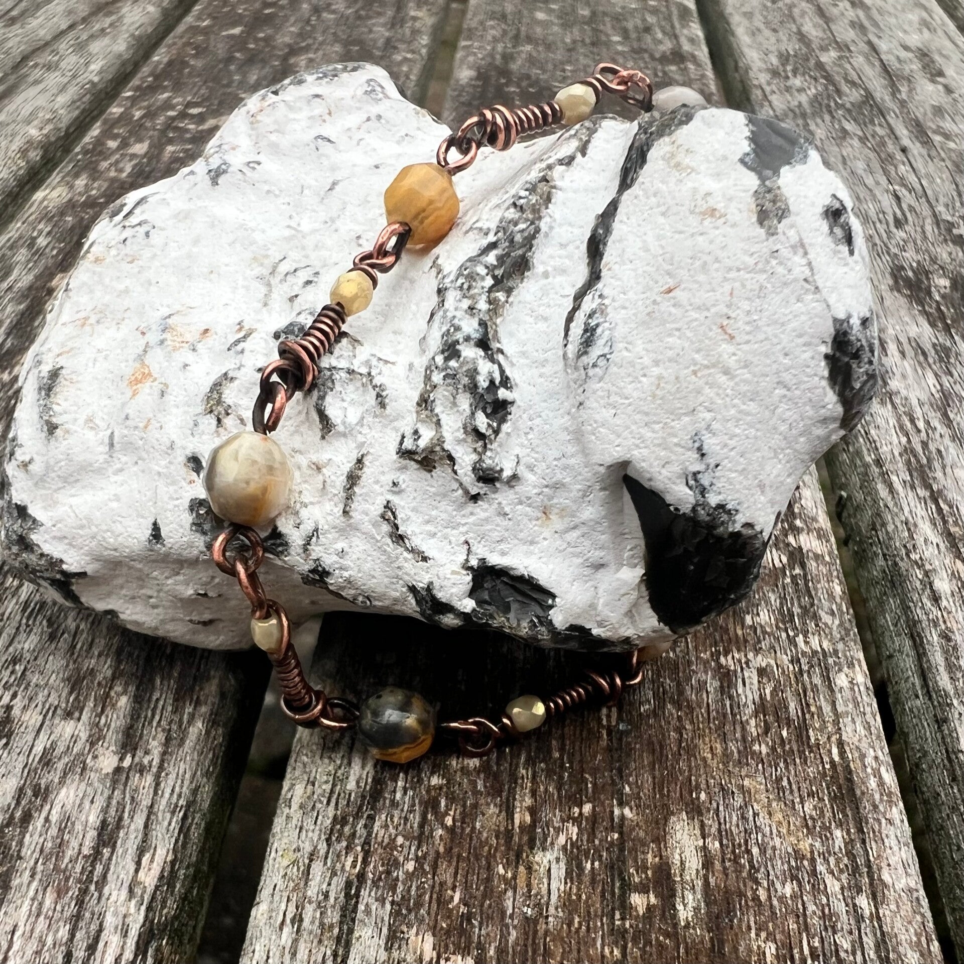 Materialer: Crazy Agat, facetterede Czech-perler, oxideret vintage kobber