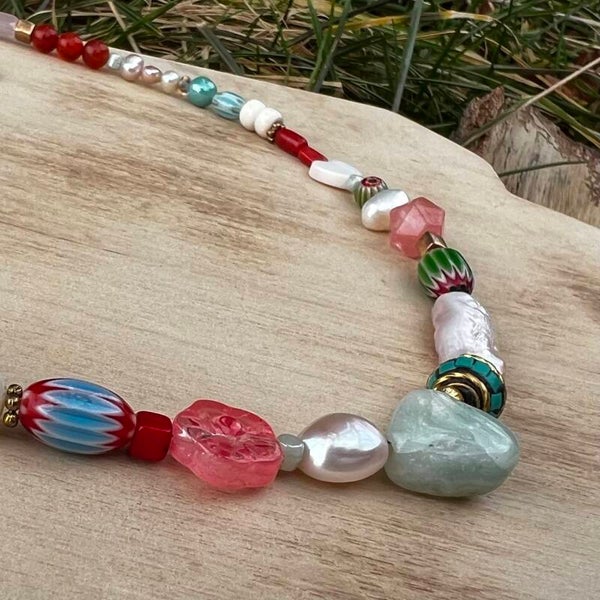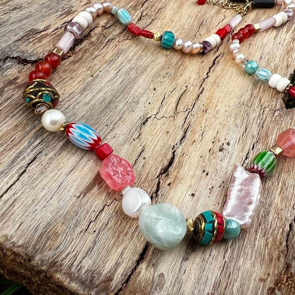 Håndlavet unika – Muse of Colors – Farvesymfoni | Perlekæde med Indisk Kashmir-perle