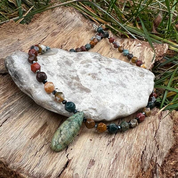 Håndlavet unika – Nordic Essence – Havdyb | Halskæde med Ocean Jasper og Magnesit