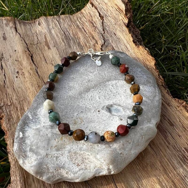 - Ocean Jasper & Hæmatit: Kombinationen af Jasperens følelsesmæssige balance og Hæmatittens jordforbindelse giver et smykke, der støtter din personlige styrke.