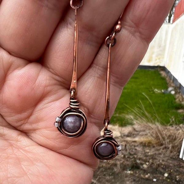 Unik håndlavet øreringe | Copper Roots – Freja | Kobber & Agat
