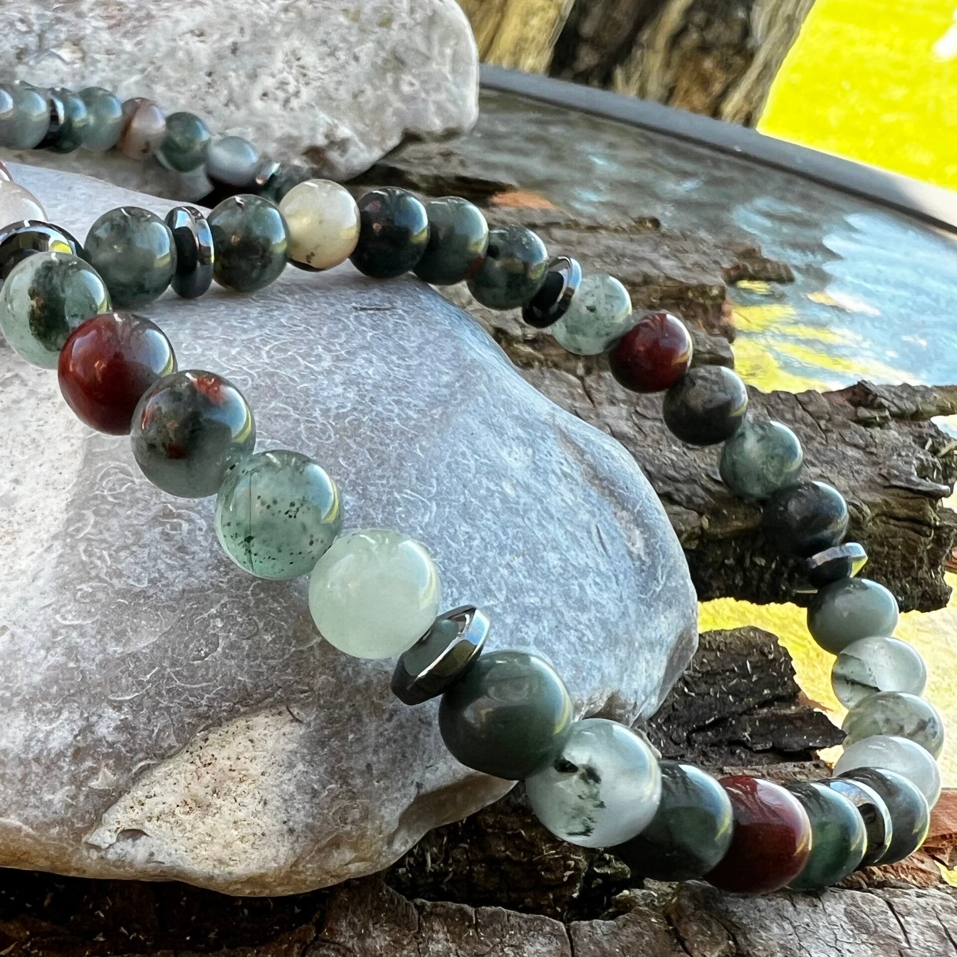 - Afrikansk Blodsten: Kendt som en beskyttende krigersten. Den siges at give mod, styrke og udholdenhed til bæreren og hjælper med at bevare jordforbindelsen.