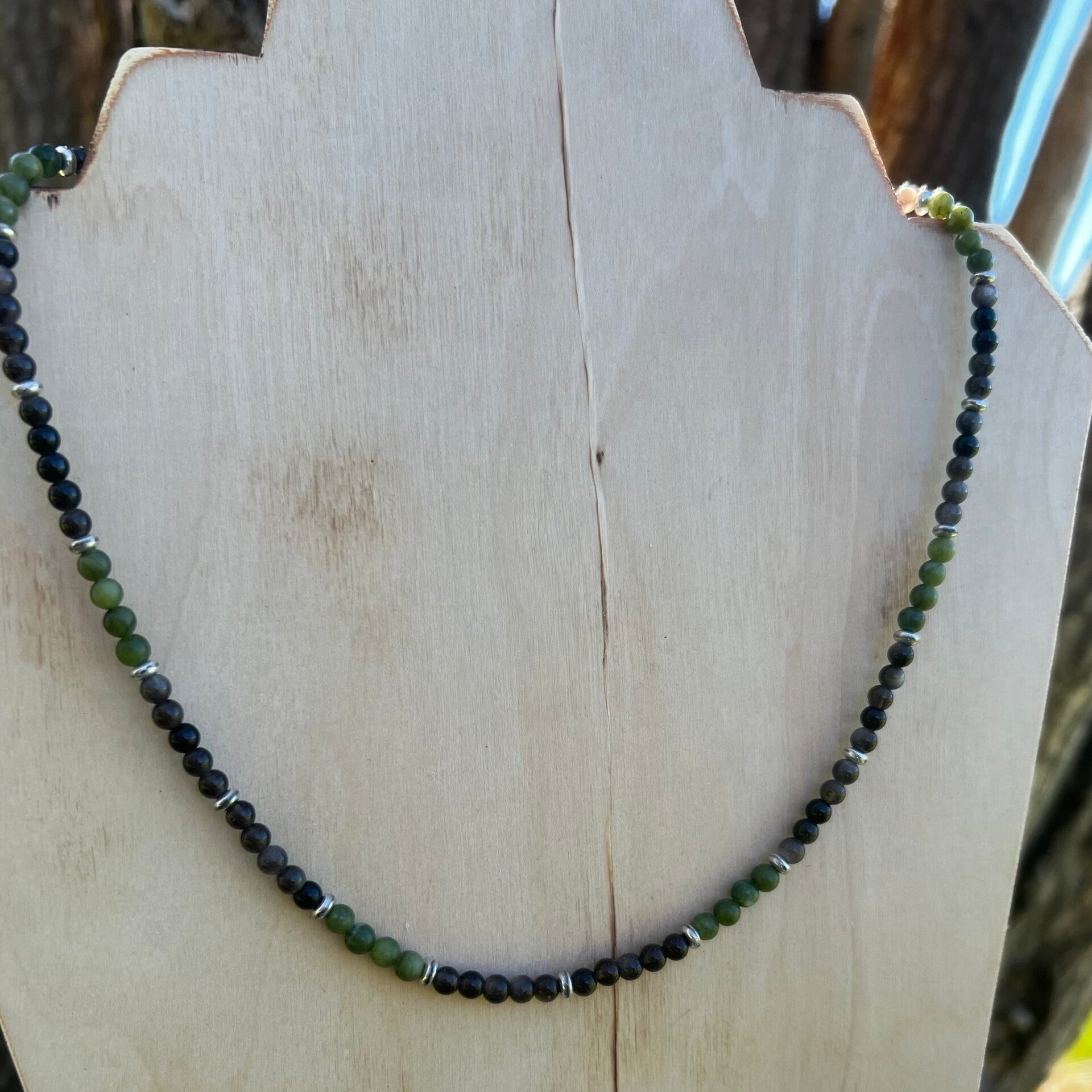 Unik Maskulin perlekæde | Nordic Path – Vidar | Jade & Obsidian