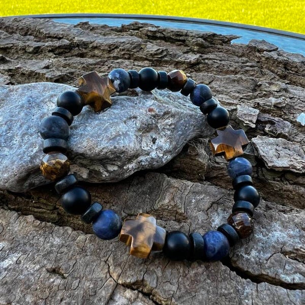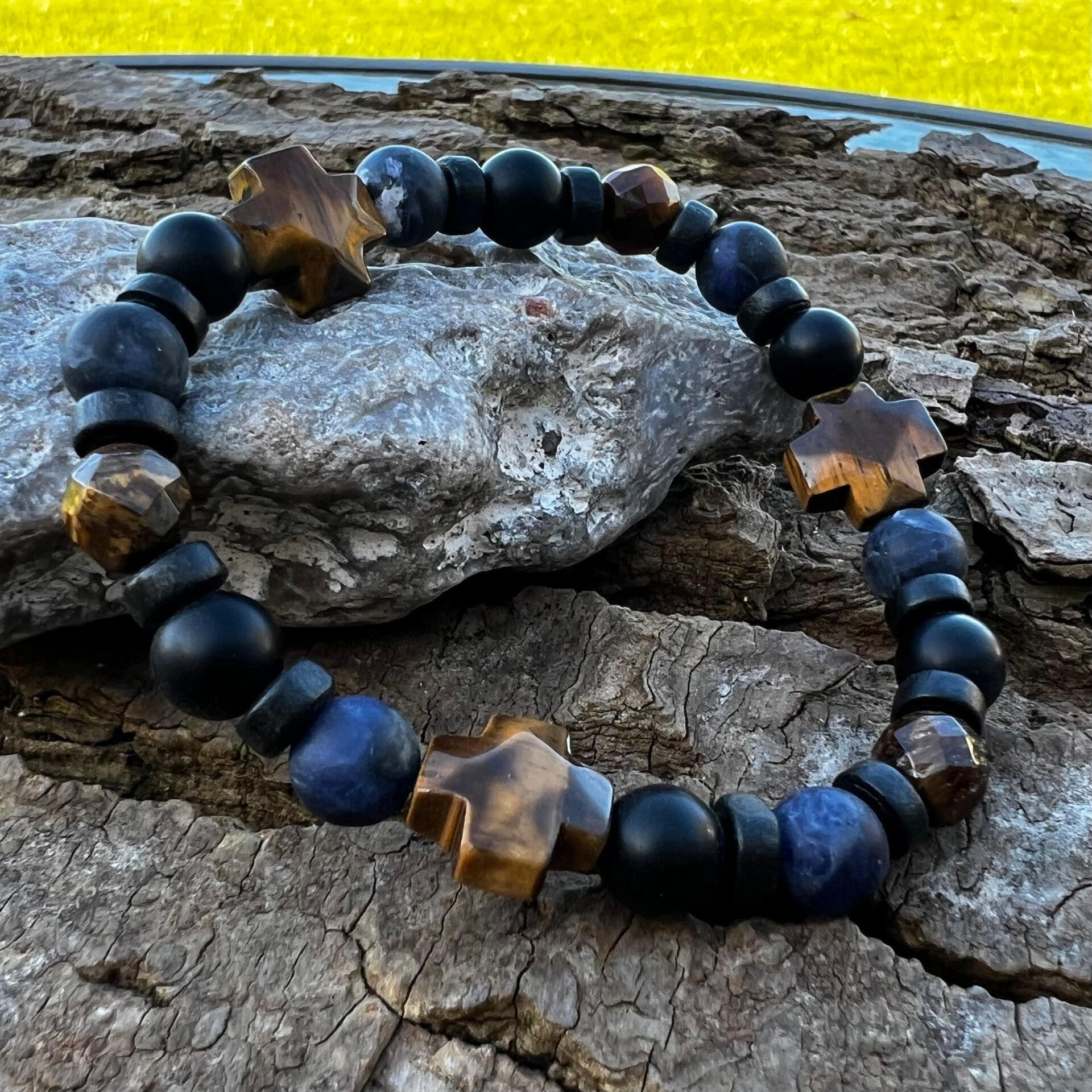 Nordic Path – Tyr | Elastikarmbånd med Sodalit, Tigerøje & Kokos